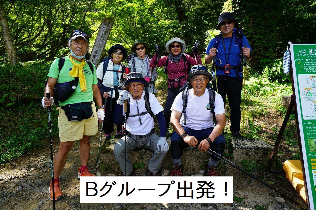 昔取った杵柄か、バスを降りると登山靴を履き、パッキングの確認、水の補充、準備体操など各自が手際よく出発の準備です。私自身、大学時代は苦い経験の登山でしたが、OB会の登山は晴れ晴れとして、楽しさとうれしさと天気よ何とか持ってくれと祈るだけでした。また、数日前には登山道に熊が出没して全国ニュースにもなり不安でしたが、常に誰かの笑い声や昔話があり熊は近づけなかったようです。