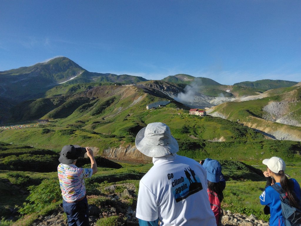 今回の山行の醍醐味の一つとして、富山市内から、一気に室堂に行けることでした。おかげさまで、電車、ケーブル、バスなどの乗り換えのストレスなく、体力温存して、今回の山行に備えることか出来ました。それでも、雷鳥沢ヒュッテの懇親会ては、早くにダウンしてしまいました。翌日は雷鳥やクマなど野生あふれる動物に遭遇し、びびりながらも、快晴の浄土山を回り、無事に室堂まで、散策出来ました、今回の山行準備、運営など役員の方々には大変感謝するしだいです、来年もぜひ参加したいと思っております。