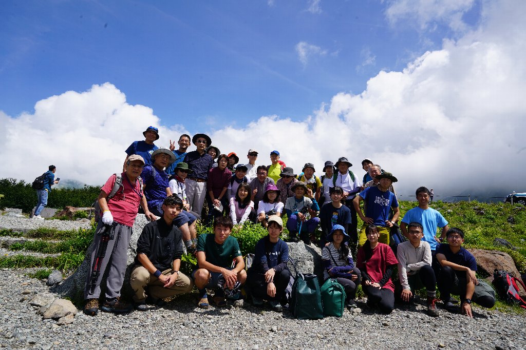 日本列島を焦がすような2025年夏の灼熱地獄から逃れ、今年2回目を迎える「TWVの日」山行は、8月23日、24日両日、爽やかな風が吹き抜ける立山・雷鳥沢で開催しました。今回は大先輩の早東 昇さん(S43年入学)が千葉から、同期の小林 茂雄さん(S43年入学)、篠原 達雄さん(S46年入学)が初参加。また、昨年に引き続き、前会長の松田 誠さん(S44年入学)、今年も短パン姿で颯爽と大阪から金坂 正比古さん(S46年入学)、愛知から鈴木夫妻(S48年入学)など幅広い年代から23名のOBの皆さんが立山に結集しました。そして、今回初めて現役部員を招待し、10名が参加してくれました。総勢33名で、年の差は60歳位ありましたが、山への想いは皆同じ、天候にも恵まれ楽しい山行となりました。